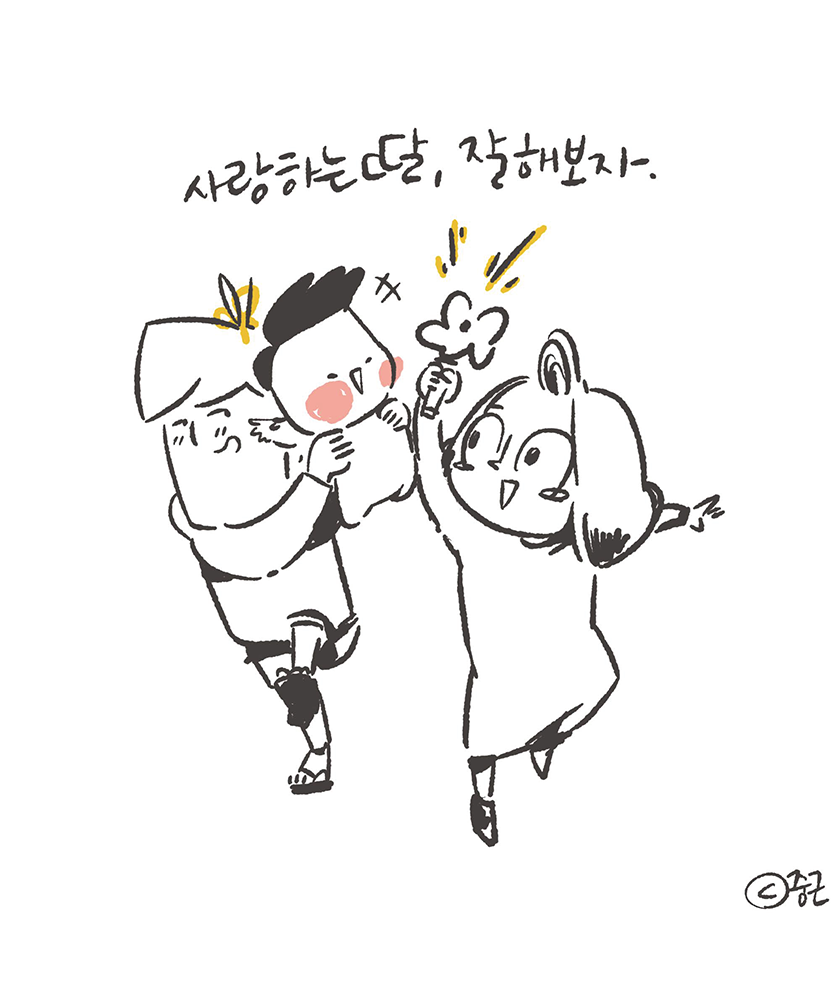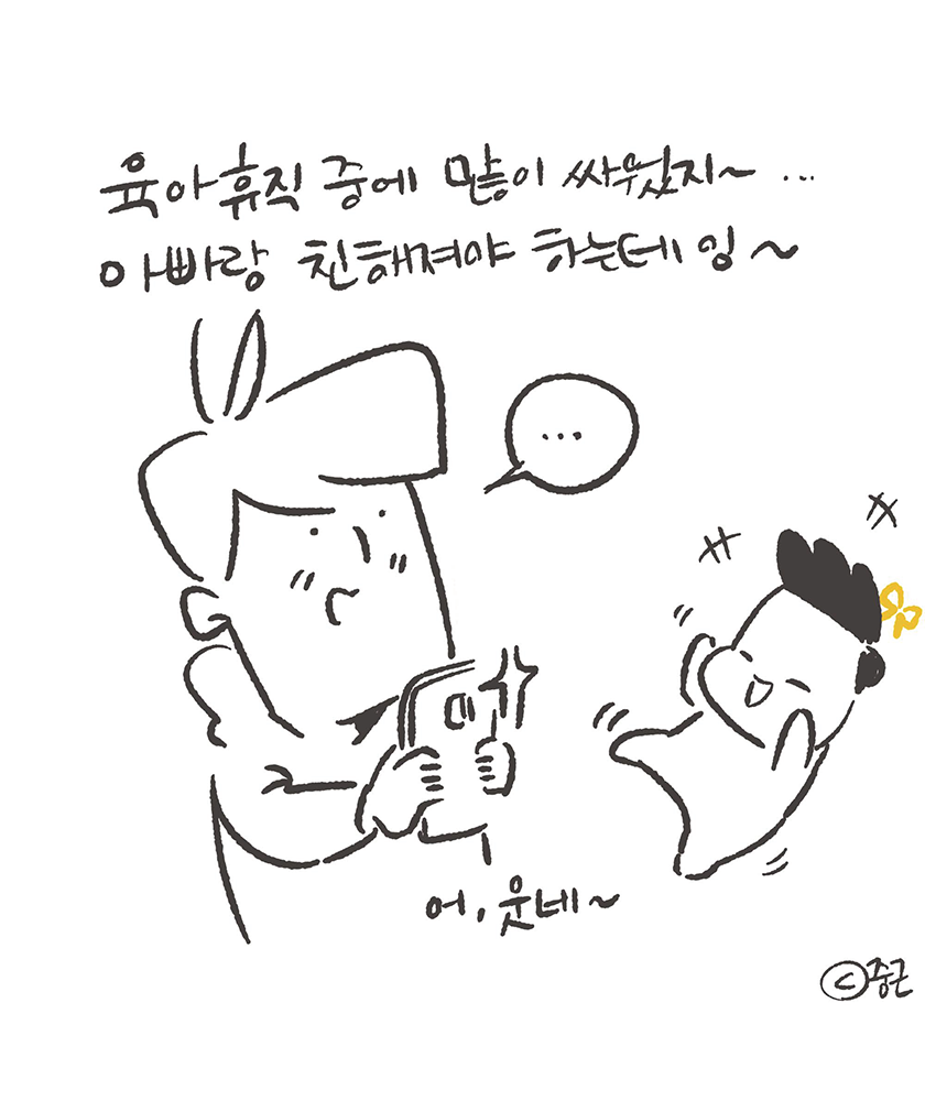 절대로 길지 않은 육아휴직을 끝내려다 보니 이런 생각이 문득 들었다. 뭔가 남겨줄 만한 것이 있을까? 매 순간순간 울고 웃으며 육아했던 나와 아내 그리고 그 속에서 생존해야했던 우리 아기. 낙서를 일삼는 사람이 뭘 해줄까 싶어 낙서를 해주기로 했다. 남들 말하는 육아일기 같은 것 말이다. 나를 위해서 너를 위해서 그리고 우리를 위해서! 아이가 태어나고 산부인과에서 3일, 조리원에서 2주, 네 외갓집에서 2주, 산후조리 도우미 이모님과 2주 그리고 나, 아빠의 차례가 왔다. 더 길게 육아 휴직을 해보고 싶었지만 나는 작은 회사를 다니고 있기에 회사 방침에 따라 한달의 시간만 가질 수 있었다. 새벽 마다 엄마와 교대로 잠에서 일어나 새벽 수유 등 아기를 돌봤고, 여러가지 검사와 회복을 위해 병원을 다녀야하는 엄마를 대신해 낮동안 슬이와 단둘이 시간을 보냈다. 낮에 아이를 보는 일이 생각보다 너무 어려웠고 감정적으로도 힘들었다. 분명 이유가 있어서 울었겠지만 초보 아빠는 육아모드 기어를 당황과 긴장에 박아 놓고 있다보니 서툴기 그지 없었다. 그러는 너에게 짜증내고 바로 또 후회하고 달래고 네가 잠든 사이 왜 우는지 어떻게 달래는지 뭘 해야하는지 공부를 하게 되었고 그렇게 너무 작은 딸아이는 서툰 아빠의 실습 대상이었다. 아빠는 공대생이라 프로그래밍이 대로 뭔가 진행되어야 스트레스가 적은데 육아는 다른 차원이어서 반성을 정말 많이 한 시간이었다. 게다가 이 기간동안 아내를 위해 해줄 수 있는게 뭘까? 생각한 끝에 한달이라는 짧은 시간이지만 이 어린 녀석을 데리고 수면 교육이라는 것을 해보자였고 그 과정은 험난했지만 결과는 80점 정도 줄 수 있었다. 너무 힘들어 며칠은 너를 재워놓고 여러가지 수면 교육에 대해서 공부해봤다. (딸이 태어나기 전에 우리 부부는 아이의 행동 중 닮은 쪽에서 그것에 대해 책임지자고 했었기에 잠을 잘 안 자는 것은 나를 닮은 것이므로 내가 책임져 보기로 한 것.) 결국 우리에게 맞는 수면 교육법을 찾은 것인지, 이런 아빠가 가엾고 기특해서 맞춰주는 것인지는 나중에 딸이 알려줬으면 좋겠다. 육아휴직 막바지에 지쳐있는 나에게 지인들의 연락은 잠든 낙서장이를 깨우는 경종 같은 것이었다. 솔직히 육아휴직 중에 육아하면서 쉬엄쉬엄 낙서도 하고 만화도 그려야지 했는데, 돌아보니 너무 건방진 생각이었다. 그렇게 시작하게 된 슬이야기 과연 내가 어디까지 꾸준히 할 수 있을지 ... 그리고 육아휴직 아빠들 꼭 했으면 한다. 소중하다.