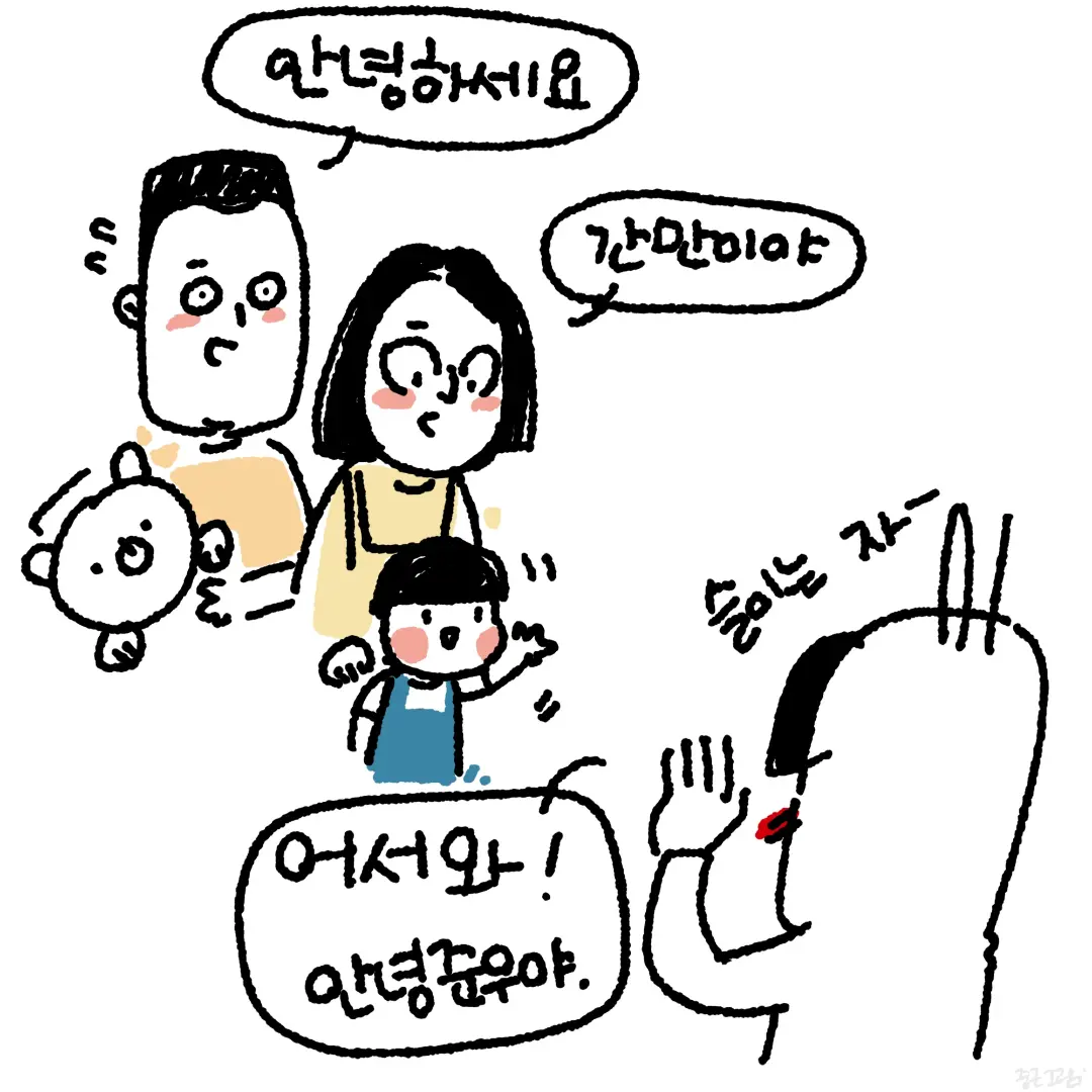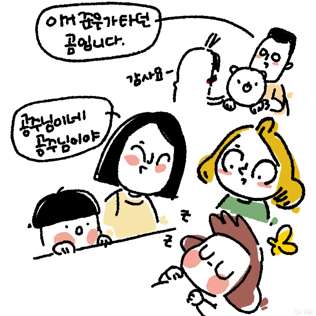 '준우는?' 이라는 물음에 격정적으로 곰을 타고 있는 준우를 보니 귀여워서 웃음이 날 수 밖에 없었다. 곰과의 마지막이라고 생각했는지 아쉽지 않을 만큼 열심히 타는 것 같았다.(고맙다...) '이제 동생 줘도 돼?'라는 엄마의 물음에 씩씩하게 그래도 된다는 아이가 너무 대견하고 신기했다. 여기서 멈추지 않고 준우는 엄마 가방에서 동생을 준다며 무언가를 꺼내왔다.