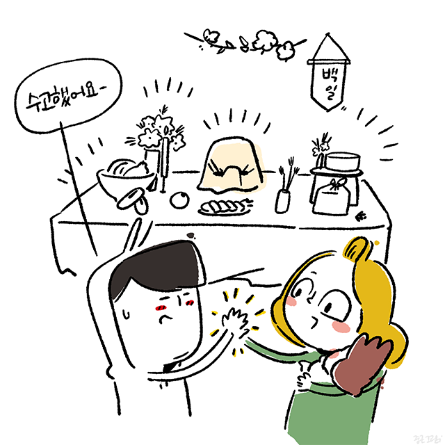 이 과정도 나름 재밌고 추억이 되겠군 싶었는데 아내가 이것도 만화로 그려보라고 했다.(...찌찌뽕)