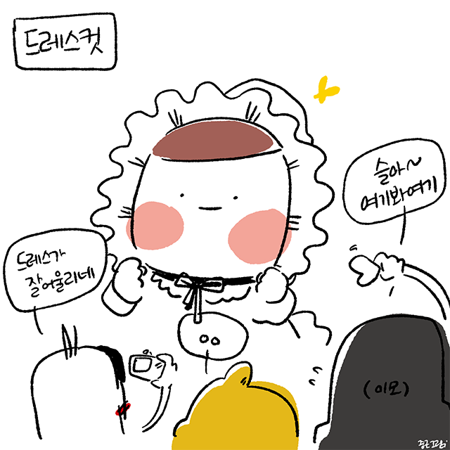 슬이는 머리 숱이 많고 볼이 빵빵해서 그런지 한복을 입고 사진을 찍으면 뭔가 결혼식장에 오신 큰어머님 포스 같은 것이 느껴졌다. 친구에게서 받은 드레스를 입히고 나서는 이 녀석이 물건너 온 스타일이 잘 어울이나 싶었다. 아빠가 또 심쿵하게 만드는구나... 잘 어울려서 계속 카메라를 들이 밀었더니 슬이도 이제는 피곤하고 귀찮은지 찡찡거리기 시작했다.